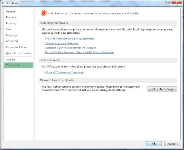 2. Go to Add-Ins tab → Un-check all the tick marks of disabling add ins. If you want Add-Ins to be signed by trusted Publisher, check first option ticked.